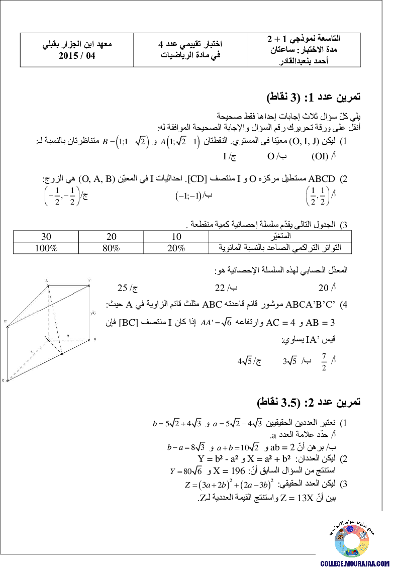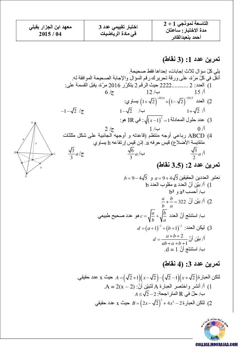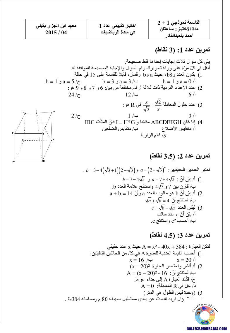 Index of /document/parascolaire/01-02-23/neuvieme/اختبارات-تقييميّة-نموذجيّة-وإصلاحها_في_الرياضيات